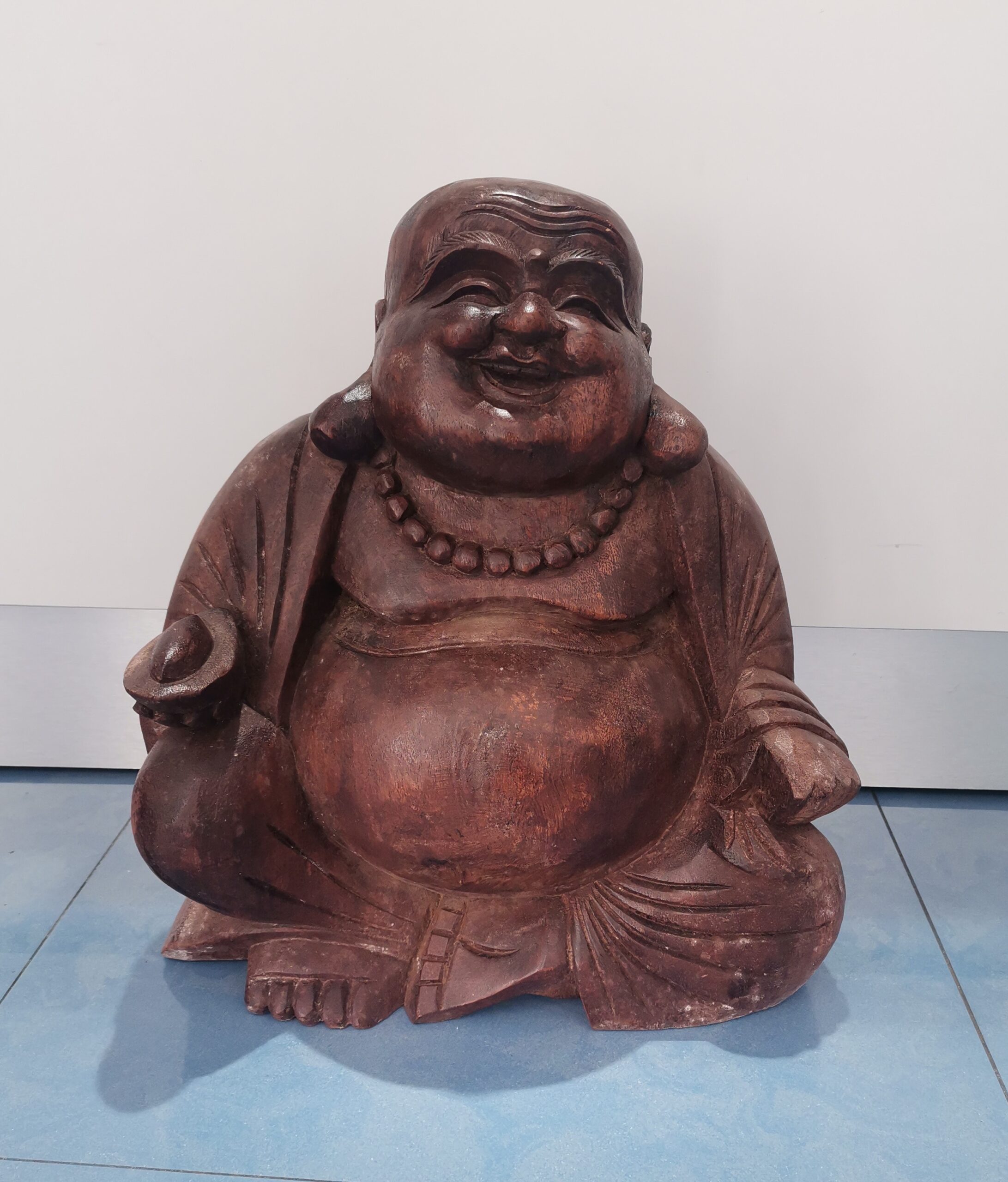 Espectacular figura de Budha de la abundancia. Figura de decoración de madera de Suar. Tamaño 30 centímetros de altura , 14 centímetros de profundidad y 28 centímetros de ancho . Encontramos a Budha sentado y sobre su mano lleva un lingote de la abundancia.