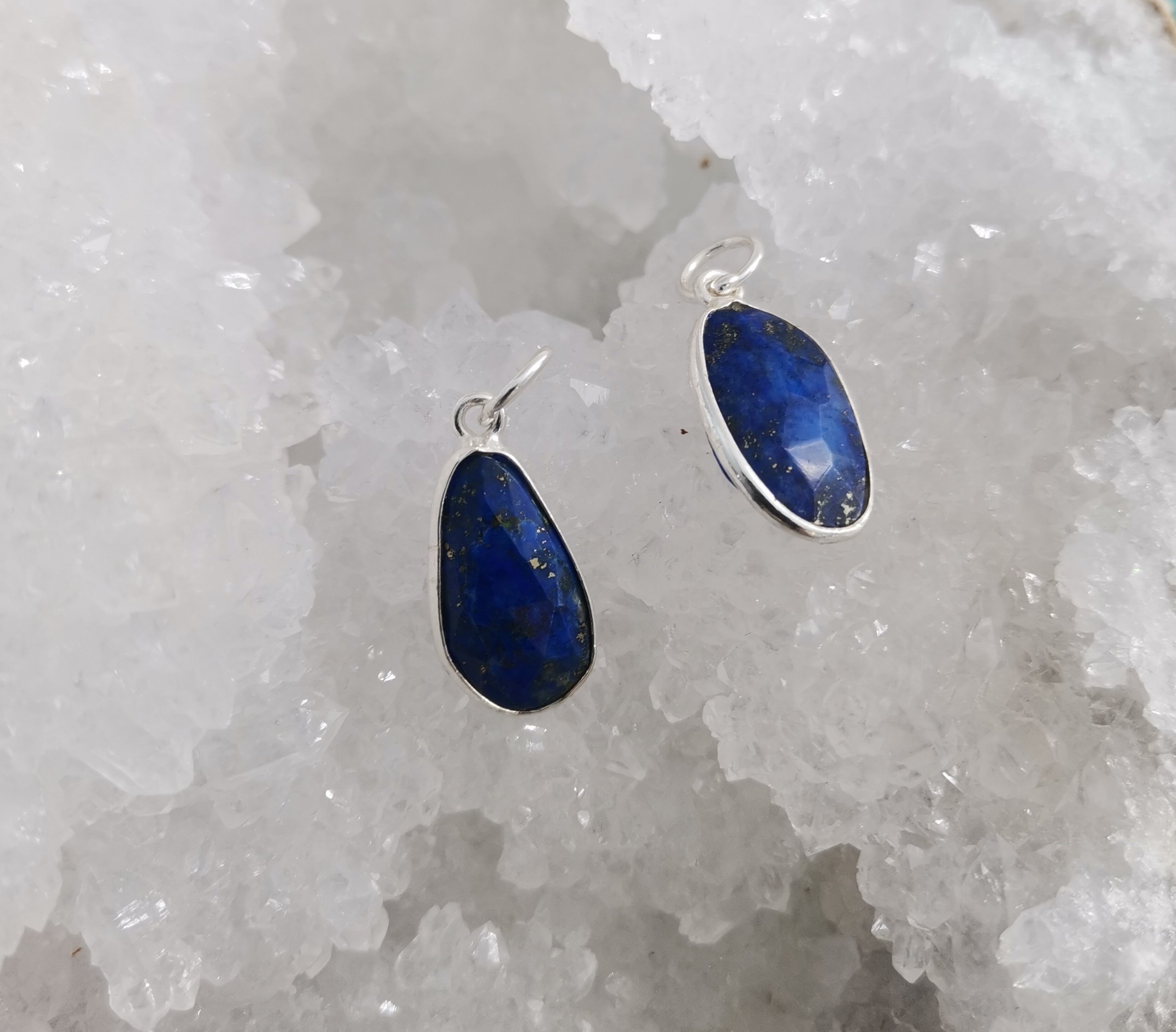 Colgante de plata de ley y Lapislázuli. Colgante de mineral natural pulido en talla flateada. Espectacular colgante tanto por su calidad como por su bello color.Tamaño del mineral entre 1,5 centímetros y 1 centímetro dependiendo de la pieza.