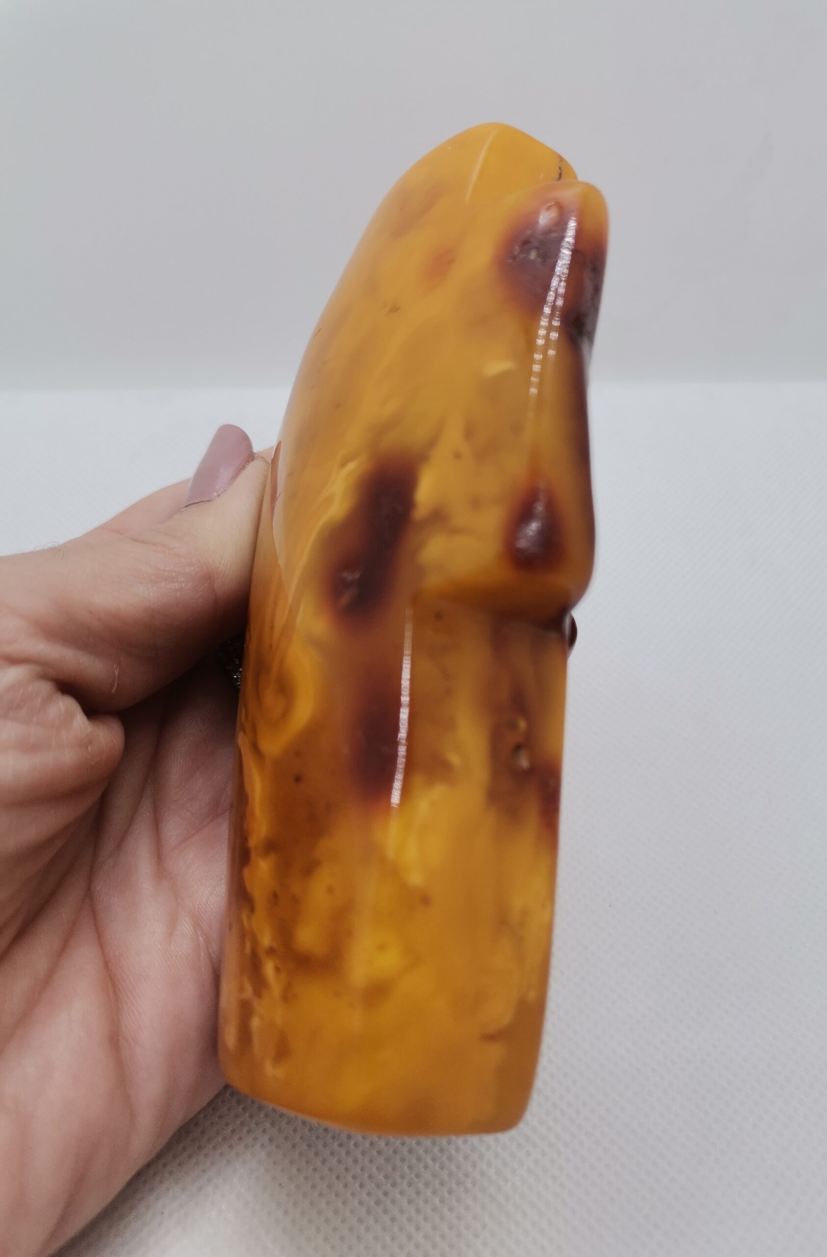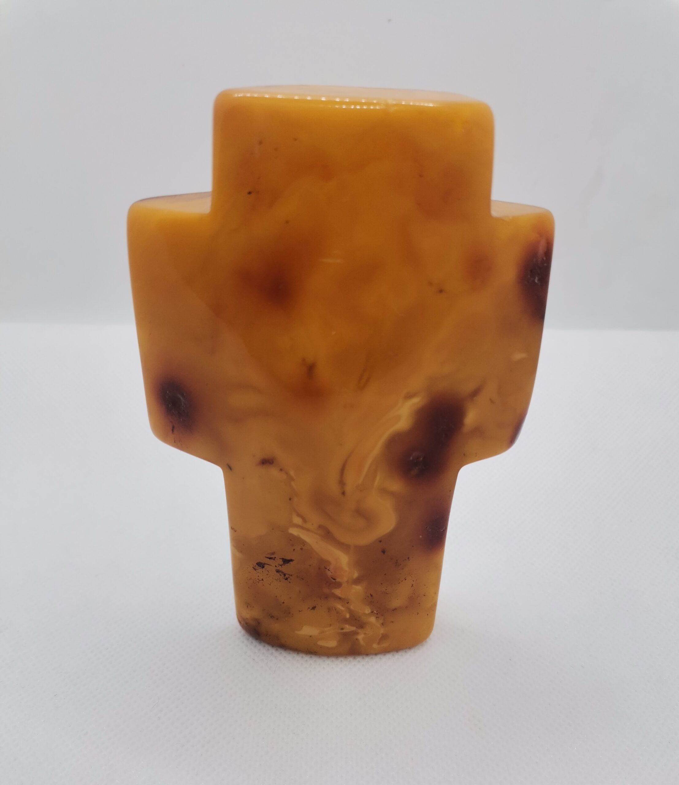 Espectacular pieza de Ámbar. Pieza única. Procedencia Mar Báltico. Posee certificado de autenticidad y procedencia. La calidad del ámbar es inmejorable. Encontramos una pieza de Ámbar pulida en forma de cruz. Tamaño 11 centímetros de altura por 8 centímetros de ancho y 3 centímetros de grosor.