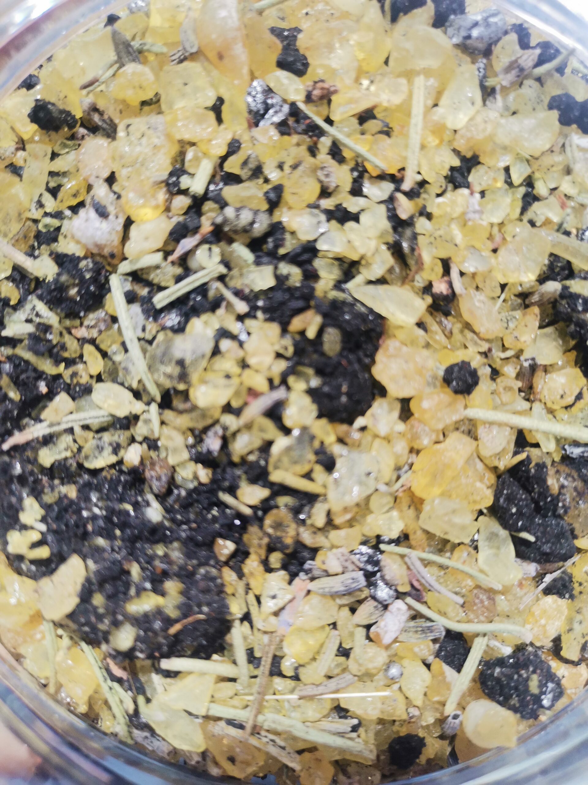 Incienso en resina natural. Incienso de Sevilla. Este incienso del Silencio lleva una fina mezcla de resinas naturales , romero, copal y incienso negro. Está disponible en bolsa de 45 gramos .