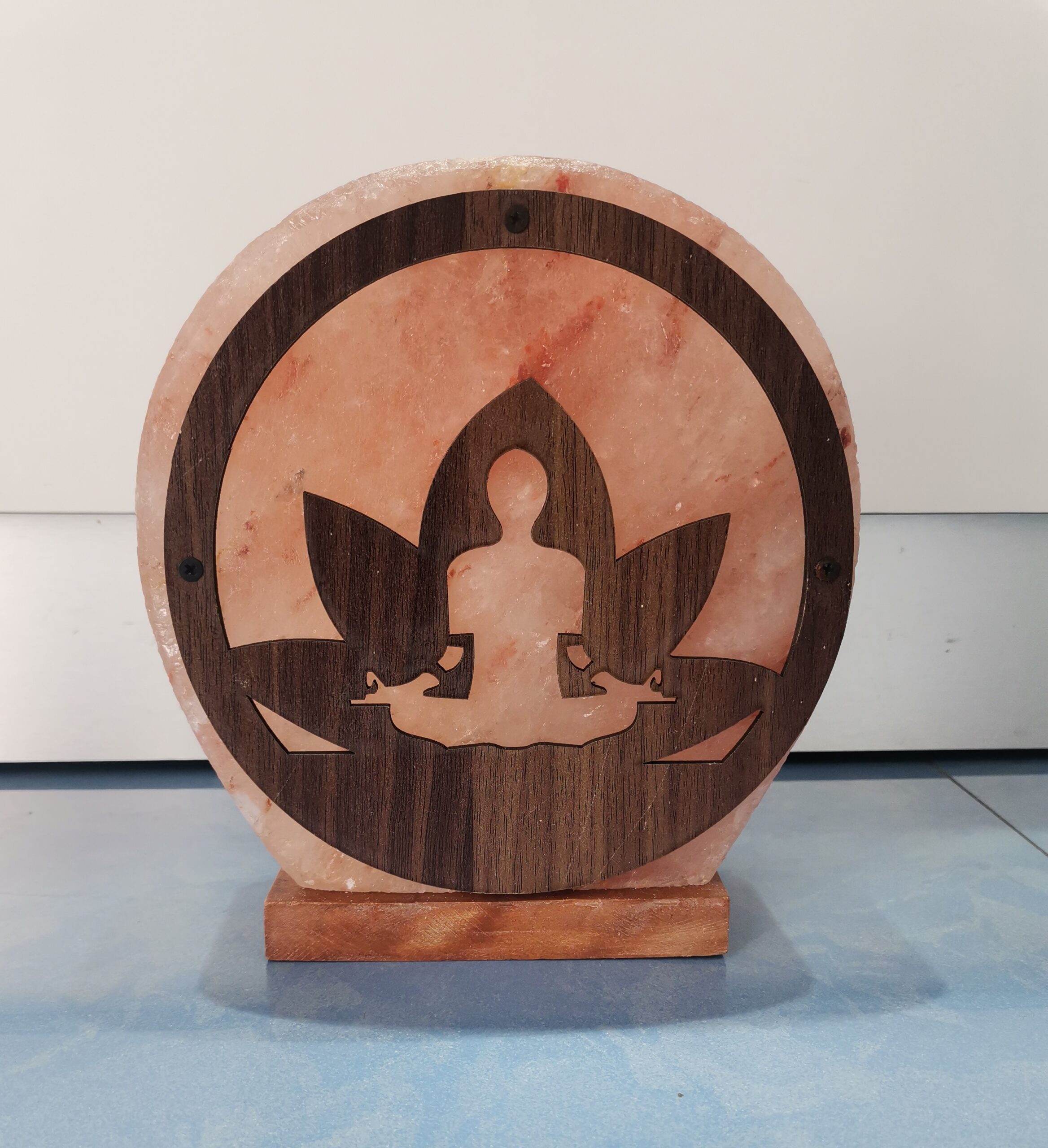 Lámpara de sal del Himalaya. Esta lámpara es de roca de sal del Himalaya pulida en forma circular y lleva en madera, una flor de loto. . Es natural. Tiene una medida aproximada de 20 centímetros de altura por 18 centímetros de ancho y 7 centímetros de profundidad. Lleva el adaptador de luz a la corriente y la bombilla. Las lámparas de sal tienen las propiedades de antiestrés, mejora el ánimo y ayuda con la ansiedad, neutraliza la radiación electromagnética, reduce los síntomas de la alergia y del asma, aumenta los niveles de energía, previene la depresión , crea el aura Feng Shui y purifica las bacterias del aire.