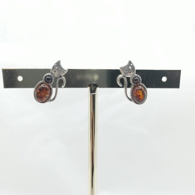 Pendiente de Ámbar y plata de ley. Procedencia Mar Báltico. Calidad extra. Color impresionante. Encontramos el Ámbar en forma de rombo anclado en plata. El cierre es de plata de ley y el método de cierre es de rosca. El tamaño de la joya es de 1,5 centímetros de largo en total .